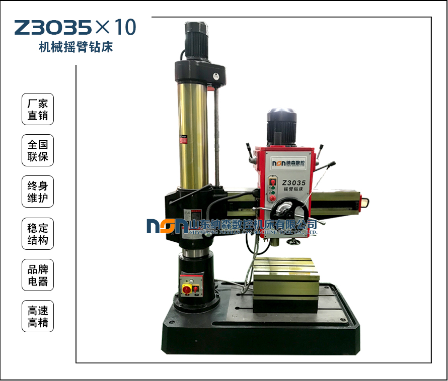 1.搖臂鉆床采用機(jī)械傳動,主軸箱、搖臂、立柱均由機(jī)械加緊,操作簡便。